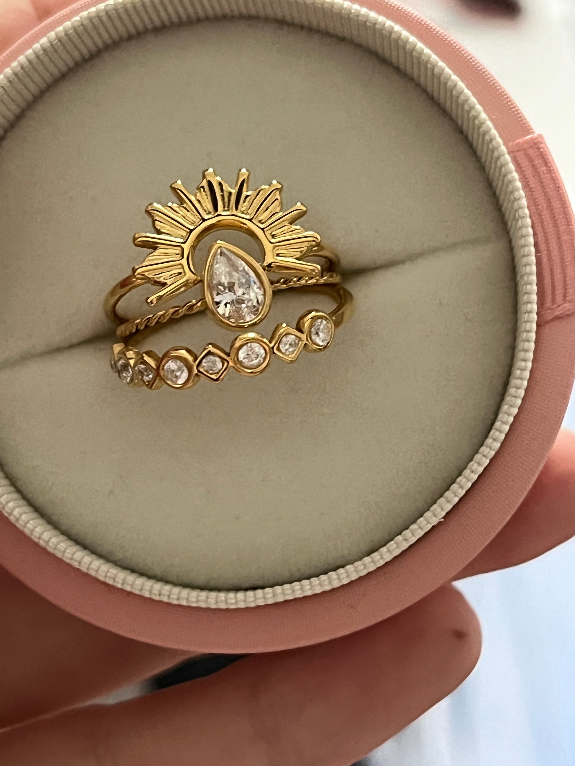 Three stacked stainless steel diamond rings with high-end INS-style aesthetic